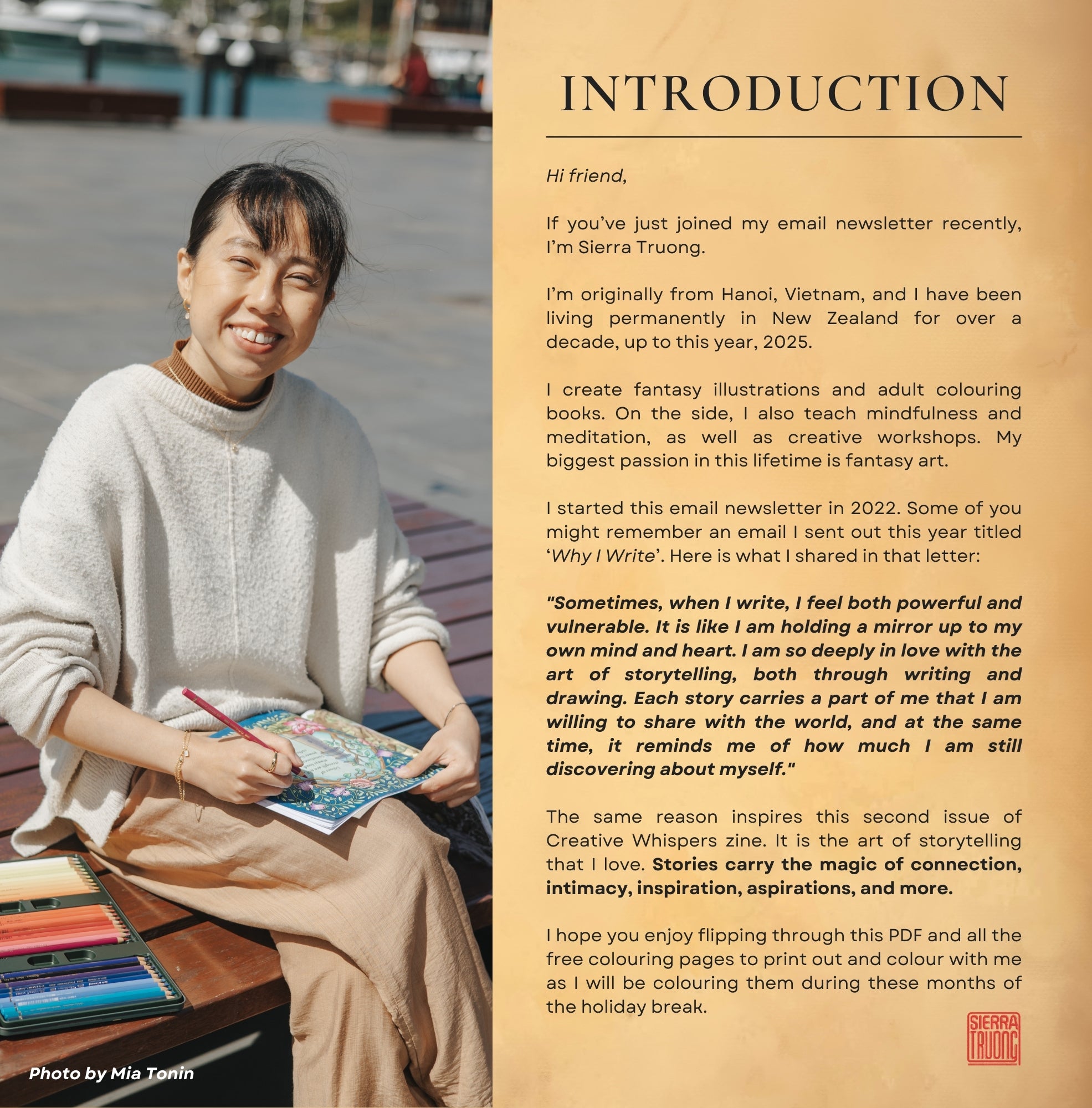 "Life's meaning is woven in the moments that bridge the beginning and the end. This little book shares stories of beginnings, endings, the things in between, and the reflections they inspire." ~Sierra Truong