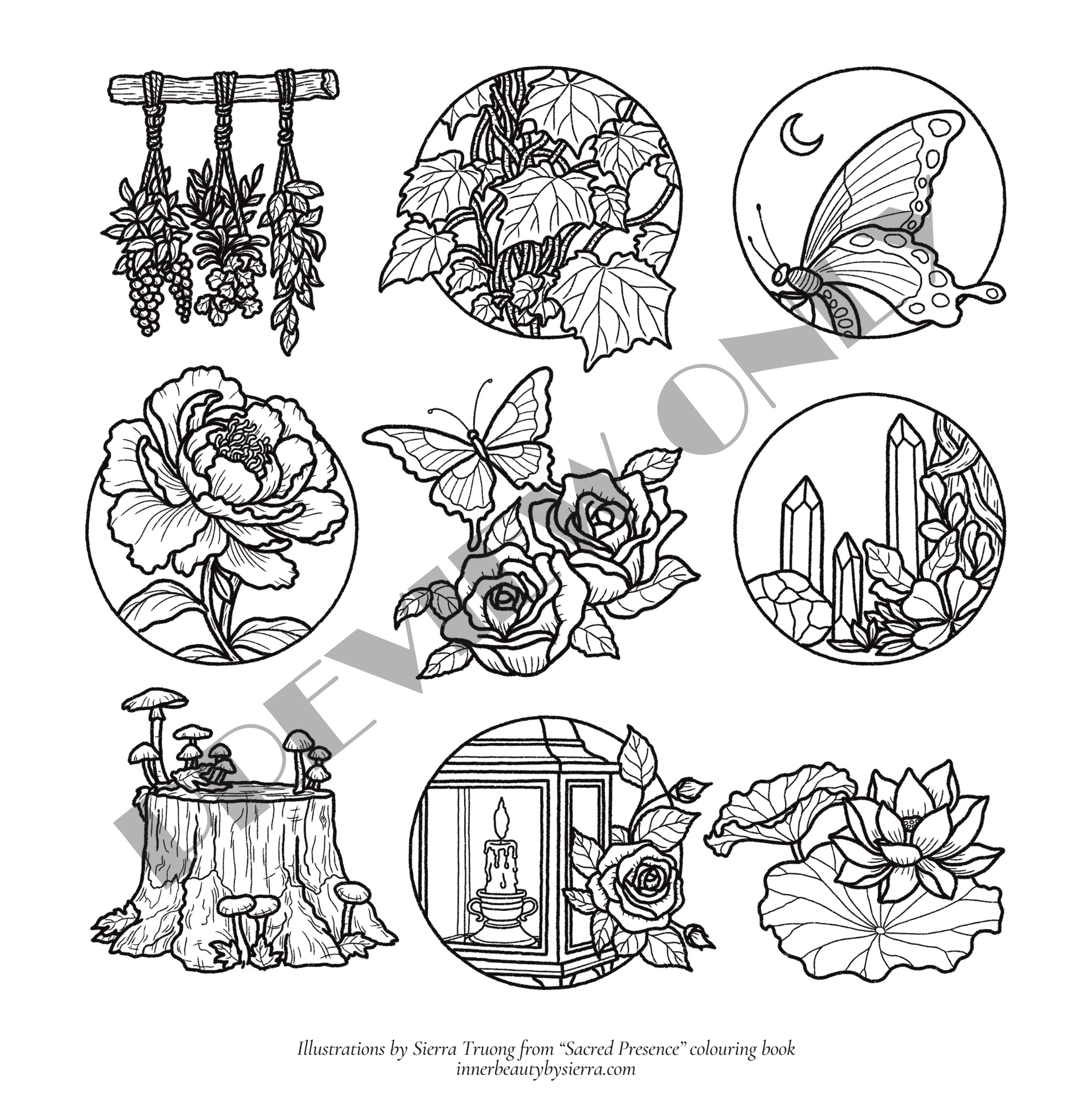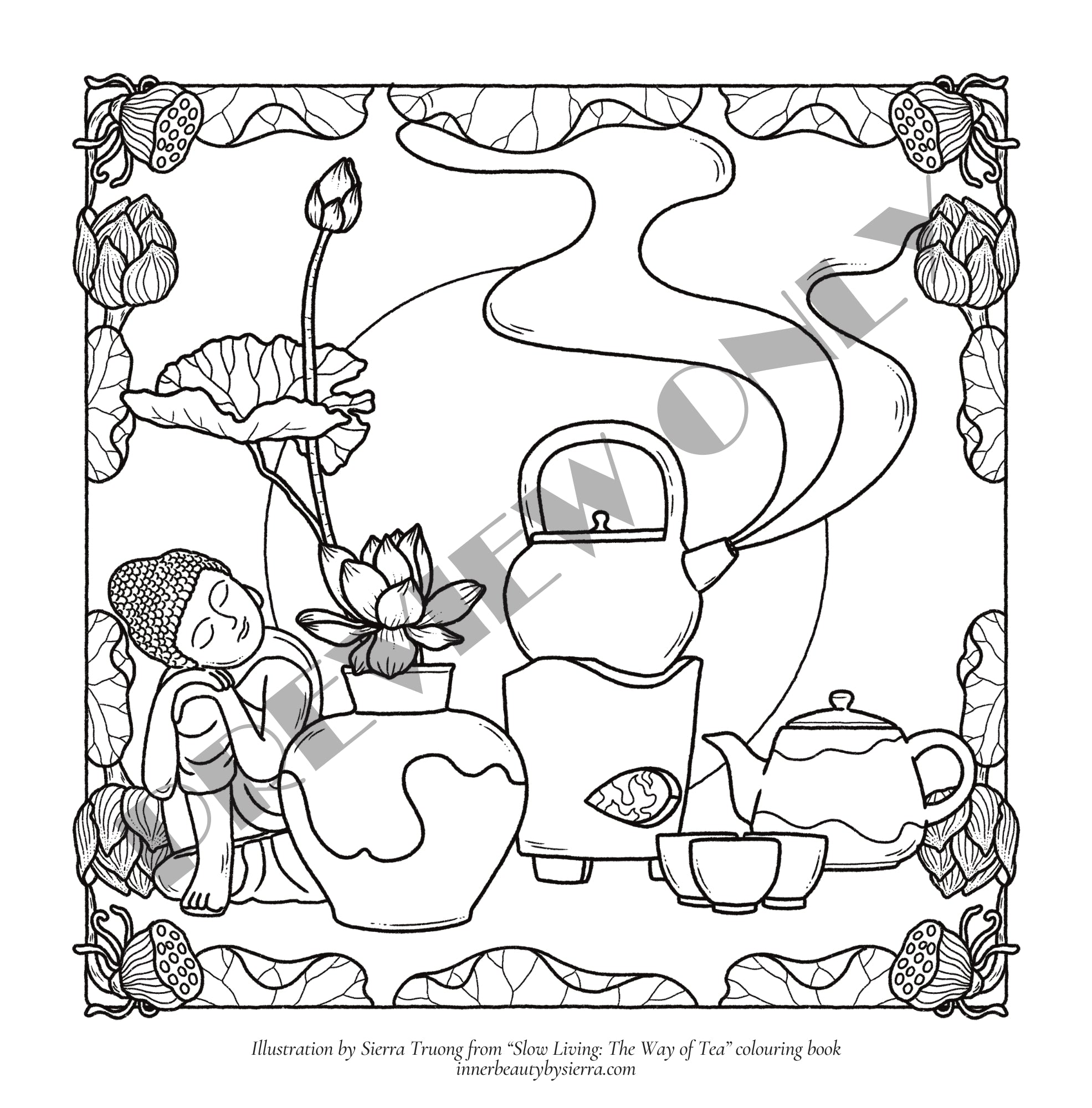 • 5 high resolution colouring pages from Sacred Presence, Earthsong & The Way of Tea to print in any paper.